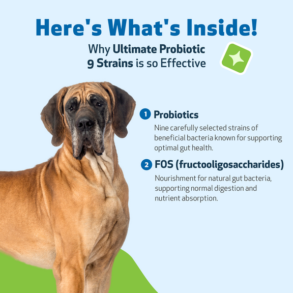 Ultimate Probiotic 9 Strains with Prebiotics - Gut Microbiome Health for Dogs