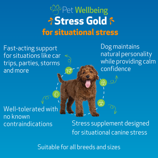 Give your dog the sense of ease they deserve—order Stress Gold to support calm moments when it matters!